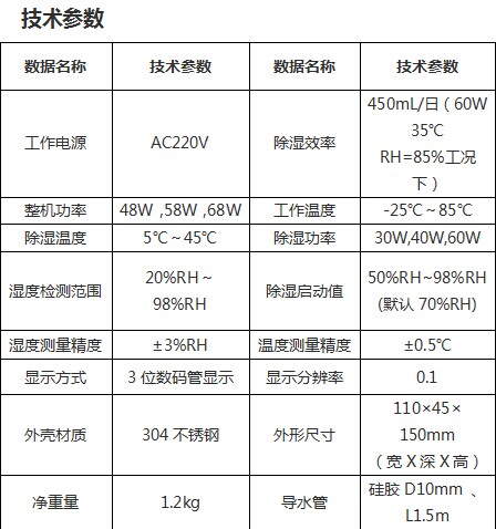 4、 濕度、溫度傳感器24小時實時采樣,超出設(shè)定啟動值自動除濕;